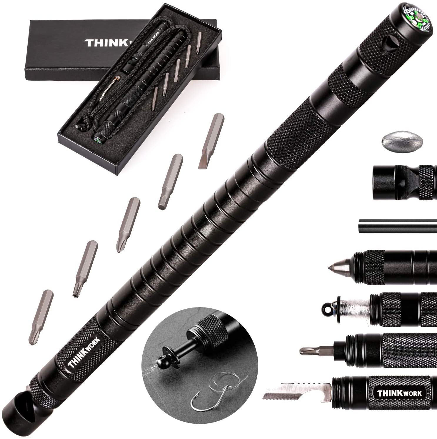 Survival Fishing Kit, Car Safety Gifts for Dad Men with 5 Screwdriver, Fire Starter, Window Breaker, Compass, Umbrella Rope and Whistles Ideal for Hiking, Camping and Repair Small Objects